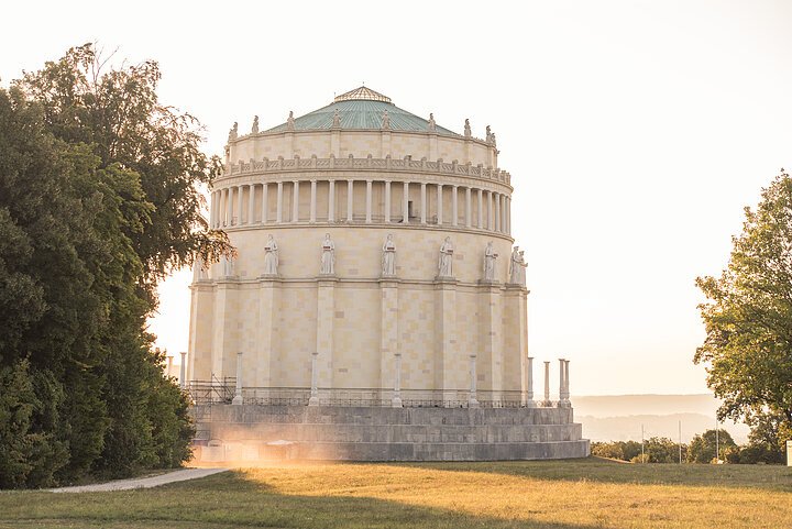 Eindrucksvolle Siegeshalle, die König Ludwig I. zur Erinnerung an die Befreiungskriege gegen Napoleon errichten ließ. Herrliche Aussicht auf Kelheim und das Altmühltal.