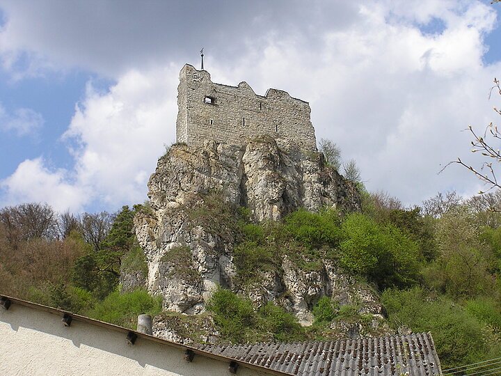 Von Rennertshofen kommend überrascht in Hütting das sich bietende Panorama mit den Resten der alten Burgruine(vermutlich aus dem 11. Jahrhundert) und senkrecht aufragenden Jurafelsen, unter die sich Hütting regelrecht Schutz suchend hinduckt.